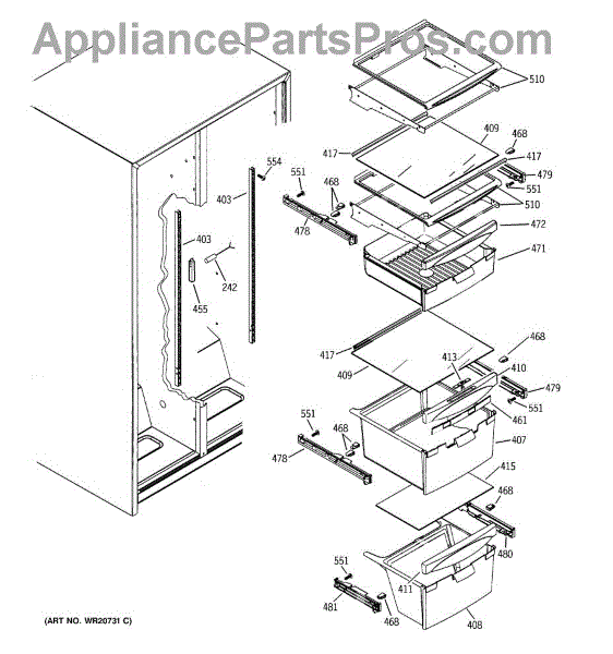 Parts for Ge GSL25JFXLLB: 07 - Fresh Food Shelves Parts