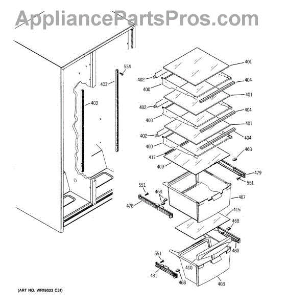 Parts for Ge GSS20GEWGCC: 07 - Fresh Food Shelves Parts