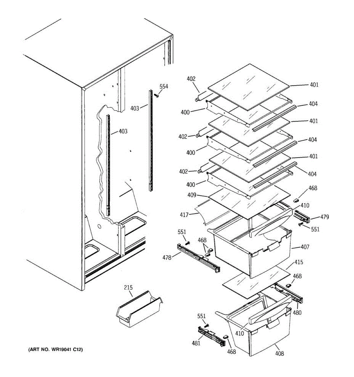 Cantilever shelf track for refrigerators. Mounts to the interior wall to support adjustable shelving. Replace if cracked, broken, or damaged.