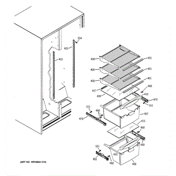 Cantilever shelf track for refrigerators. Mounts to the interior wall to support adjustable shelving. Replace if cracked, broken, or damaged.