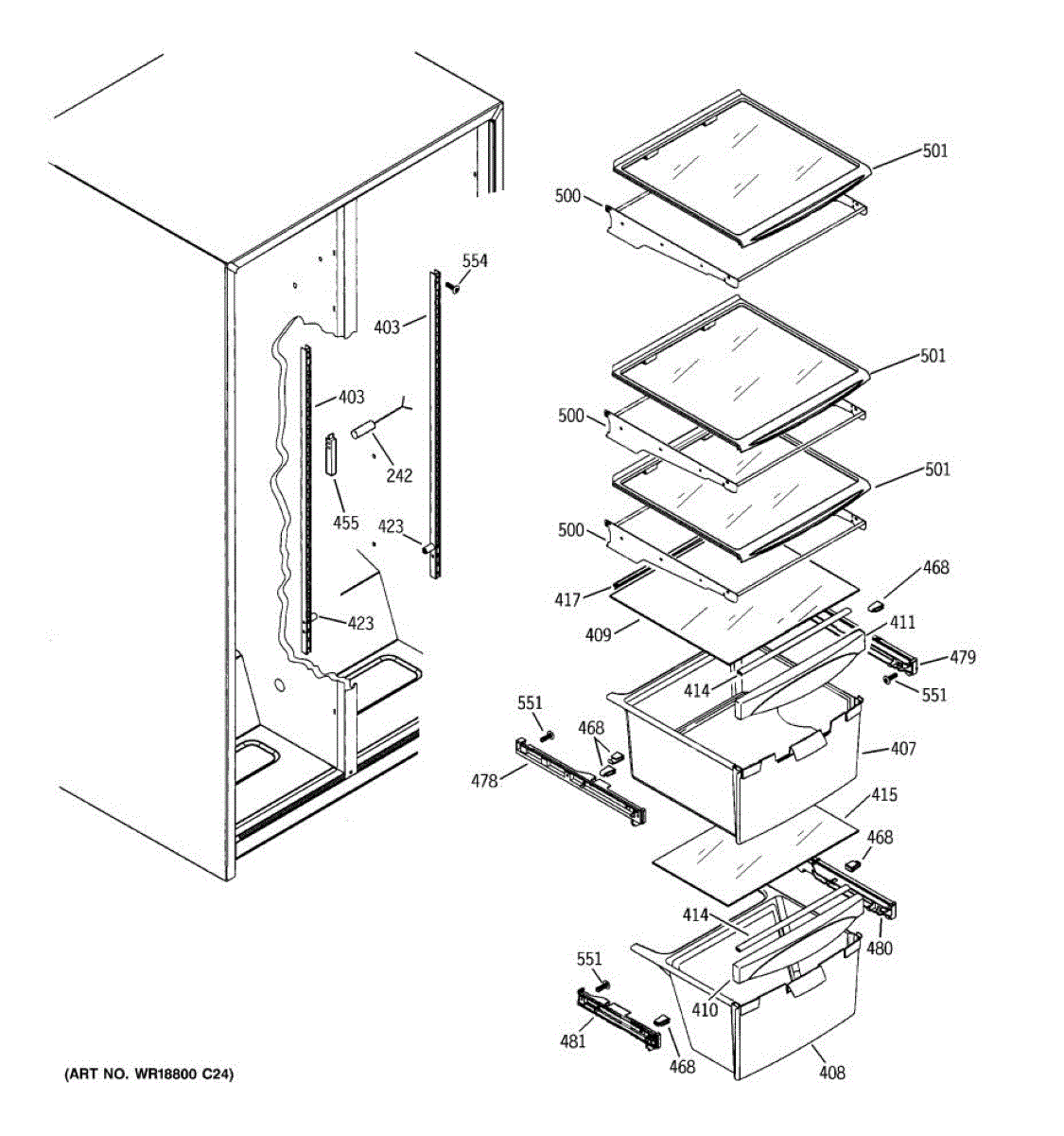 The Slide Assembly RH is an OEM replacement part for GE side-by-side refrigerators. As a replaceable sub-assembly, it restores smooth extension of plastic vegetable/multi-purpose slides on the right interior. The slide measures approximately 16 inches.