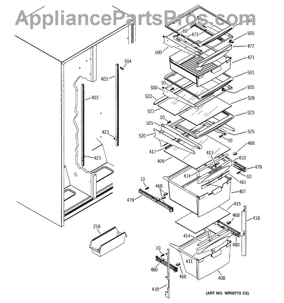 This replacement part is a snack pan slide rail, and it is intended for use in different types of appliances. This is a genuine replacement part made by General Electric. This part is able to hold up other trays and racks in the refrigerator and freezer so that extra shelf space can be utilized. These slide rails can also hold up trays that can support heavy bottles and drinks. A new snack pan slide rail might be needed if the current ones have become stripped and are unable to latch onto the shelving to support it. It is common that these parts can become brittle over time as exposure to low temperature wears down the plastic. Be sure the shelving of the appliance is clear before attempting to replace the slide rail. This is an OEM part sourced directly from the manufacturer. It is sold individually. This replacement part is compatible with different types of appliances made by General Electric.