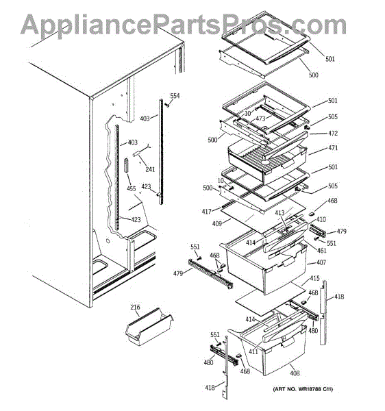 Parts for Ge GSS22WGMDCC: 10 - Fresh Food Shelves Parts