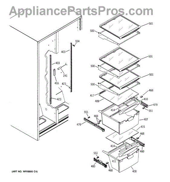Shelf track for refrigerator. Guides and supports adjustable shelves, allowing smooth sliding movement. Replace if cracked, broken, or worn smooth.