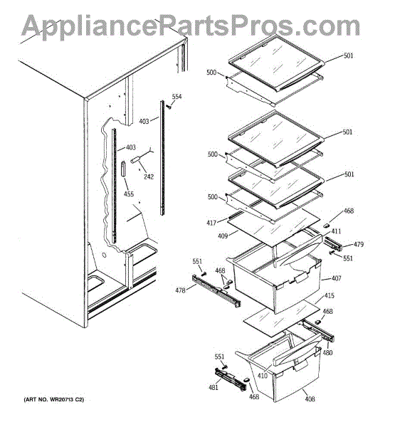 The Slide Assembly RH is an OEM replacement part for GE side-by-side refrigerators. As a replaceable sub-assembly, it restores smooth extension of plastic vegetable/multi-purpose slides on the right interior. The slide measures approximately 16 inches.