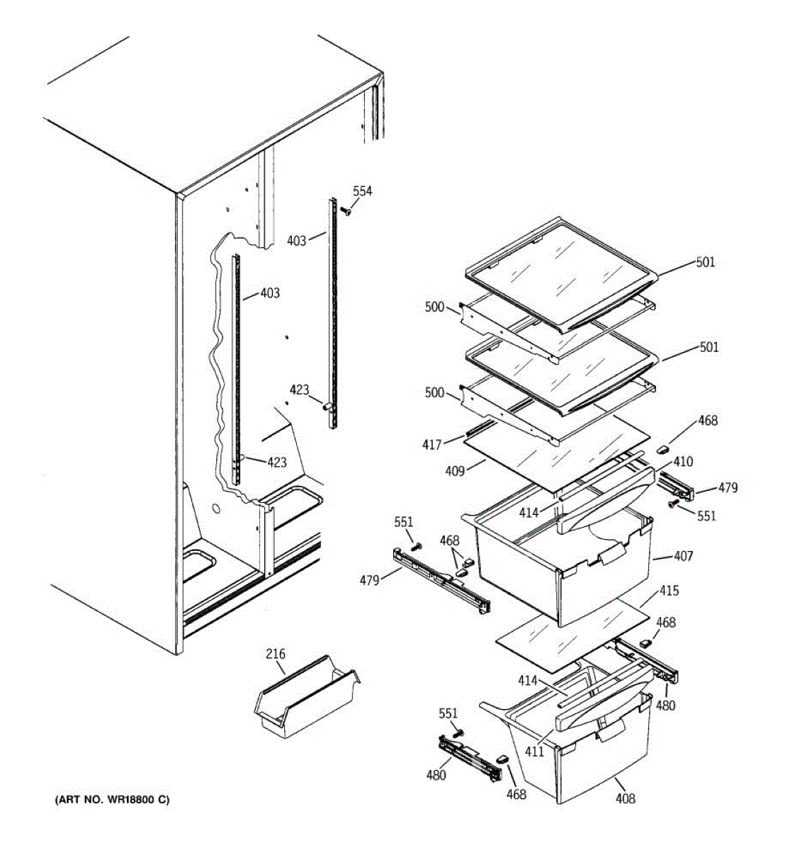 Shelf track for refrigerator. Guides and supports adjustable shelves, allowing smooth sliding movement. Replace if cracked, broken, or worn smooth.