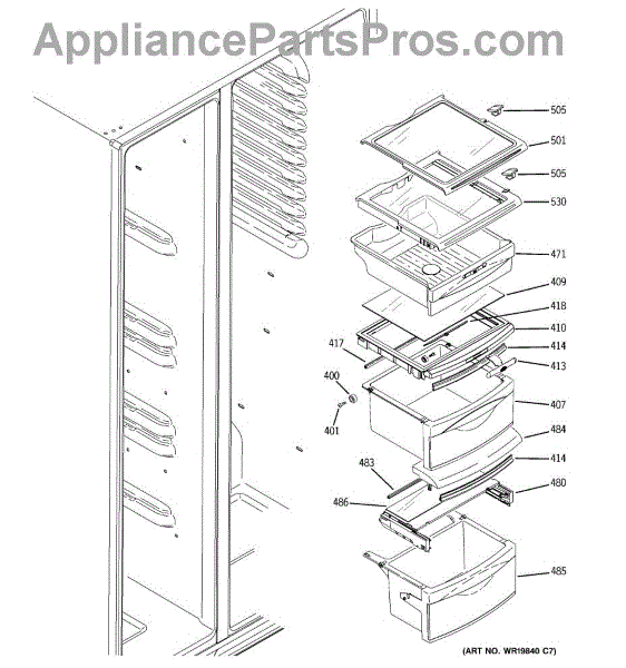 The Drawer Cover is an OEM replacement part for select GE refrigerator vegetable and deli drawers. It protects stored contents from dehydration, contaminants and prolonged illumination while keeping the drawers light-sealed. Proper drawer insulation optimizes food storage conditions. Causes of a bad drawer cover can include cracks and breaks from repeated drawer opening/closing stresses over time. Exposure to produce acids and moisture accelerates degradation of plastic sealing surfaces. Symptoms include: