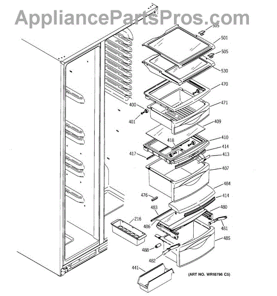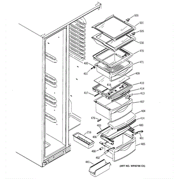 The Drawer Cover is an OEM replacement part for select GE refrigerator vegetable and deli drawers. It protects stored contents from dehydration, contaminants and prolonged illumination while keeping the drawers light-sealed. Proper drawer insulation optimizes food storage conditions. Causes of a bad drawer cover can include cracks and breaks from repeated drawer opening/closing stresses over time. Exposure to produce acids and moisture accelerates degradation of plastic sealing surfaces. Symptoms include: