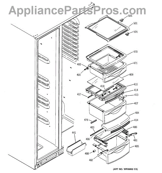 The Drawer Cover is an OEM replacement part for select GE refrigerator vegetable and deli drawers. It protects stored contents from dehydration, contaminants and prolonged illumination while keeping the drawers light-sealed. Proper drawer insulation optimizes food storage conditions. Causes of a bad drawer cover can include cracks and breaks from repeated drawer opening/closing stresses over time. Exposure to produce acids and moisture accelerates degradation of plastic sealing surfaces. Symptoms include: