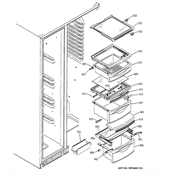 The Drawer Cover is an OEM replacement part for select GE refrigerator vegetable and deli drawers. It protects stored contents from dehydration, contaminants and prolonged illumination while keeping the drawers light-sealed. Proper drawer insulation optimizes food storage conditions. Causes of a bad drawer cover can include cracks and breaks from repeated drawer opening/closing stresses over time. Exposure to produce acids and moisture accelerates degradation of plastic sealing surfaces. Symptoms include: