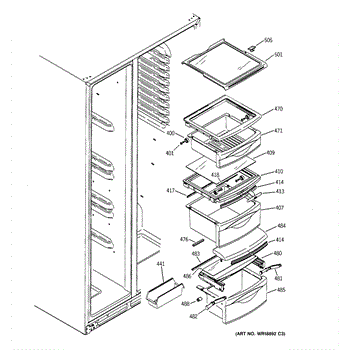 The Drawer Cover is an OEM replacement part for select GE refrigerator vegetable and deli drawers. It protects stored contents from dehydration, contaminants and prolonged illumination while keeping the drawers light-sealed. Proper drawer insulation optimizes food storage conditions. Causes of a bad drawer cover can include cracks and breaks from repeated drawer opening/closing stresses over time. Exposure to produce acids and moisture accelerates degradation of plastic sealing surfaces. Symptoms include:
