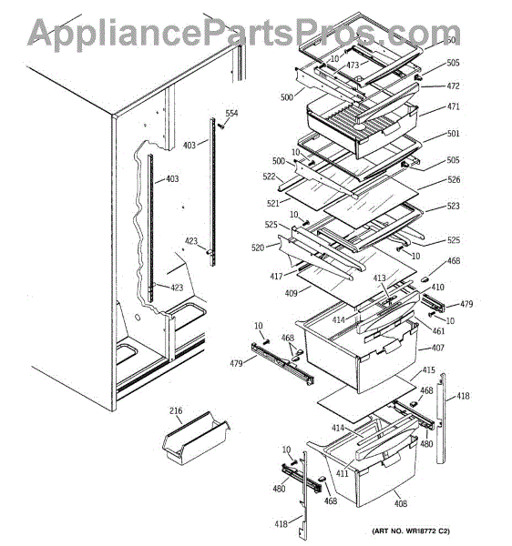 This replacement part is a snack pan slide rail, and it is intended for use in different types of appliances. This is a genuine replacement part made by General Electric. This part is able to hold up other trays and racks in the refrigerator and freezer so that extra shelf space can be utilized. These slide rails can also hold up trays that can support heavy bottles and drinks. A new snack pan slide rail might be needed if the current ones have become stripped and are unable to latch onto the shelving to support it. It is common that these parts can become brittle over time as exposure to low temperature wears down the plastic. Be sure the shelving of the appliance is clear before attempting to replace the slide rail. This is an OEM part sourced directly from the manufacturer. It is sold individually. This replacement part is compatible with different types of appliances made by General Electric.