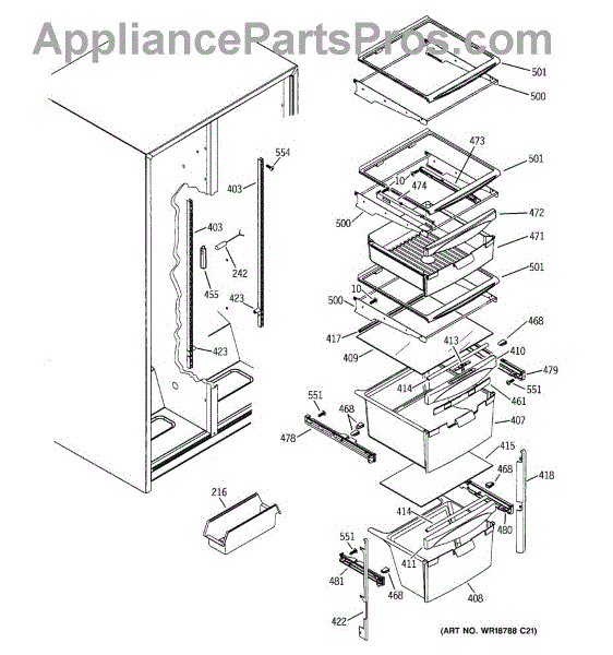 This replacement part is a snack pan slide rail, and it is intended for use in different types of appliances. This is a genuine replacement part made by General Electric. This part is able to hold up other trays and racks in the refrigerator and freezer so that extra shelf space can be utilized. These slide rails can also hold up trays that can support heavy bottles and drinks. A new snack pan slide rail might be needed if the current ones have become stripped and are unable to latch onto the shelving to support it. It is common that these parts can become brittle over time as exposure to low temperature wears down the plastic. Be sure the shelving of the appliance is clear before attempting to replace the slide rail. This is an OEM part sourced directly from the manufacturer. It is sold individually. This replacement part is compatible with different types of appliances made by General Electric.