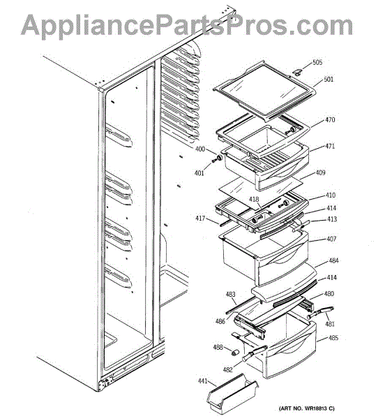 Replaces cracked or broken crisper drawer cover shelf in your refrigerator. Forms flat surface above produce drawers and supports bins for smooth sliding.