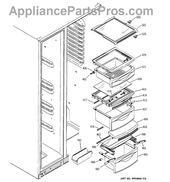 Replaces cracked or broken crisper drawer cover shelf in your refrigerator. Forms flat surface above produce drawers and supports bins for smooth sliding.