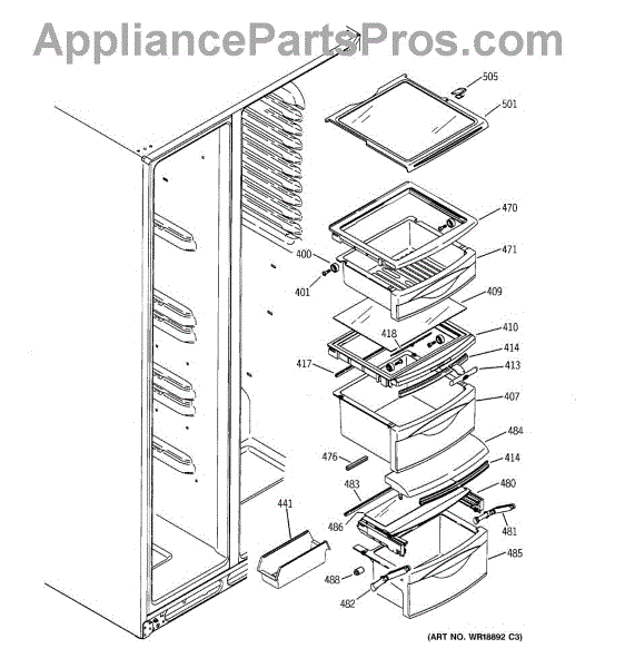 Replace your cracked or broken refrigerator middle drawer pan. This assembly includes wheels and installs in the fresh food section for deli items and produce.