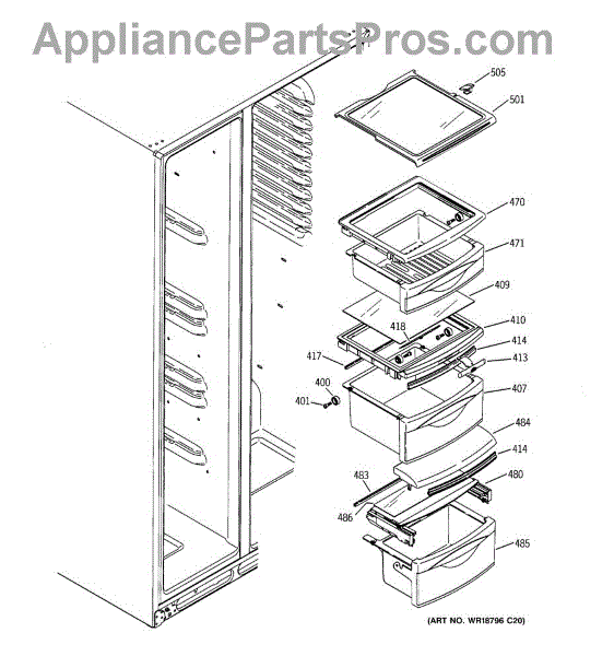 Parts for Ge GSS25TSTBSS: 08 - Fresh Food Shelves Parts