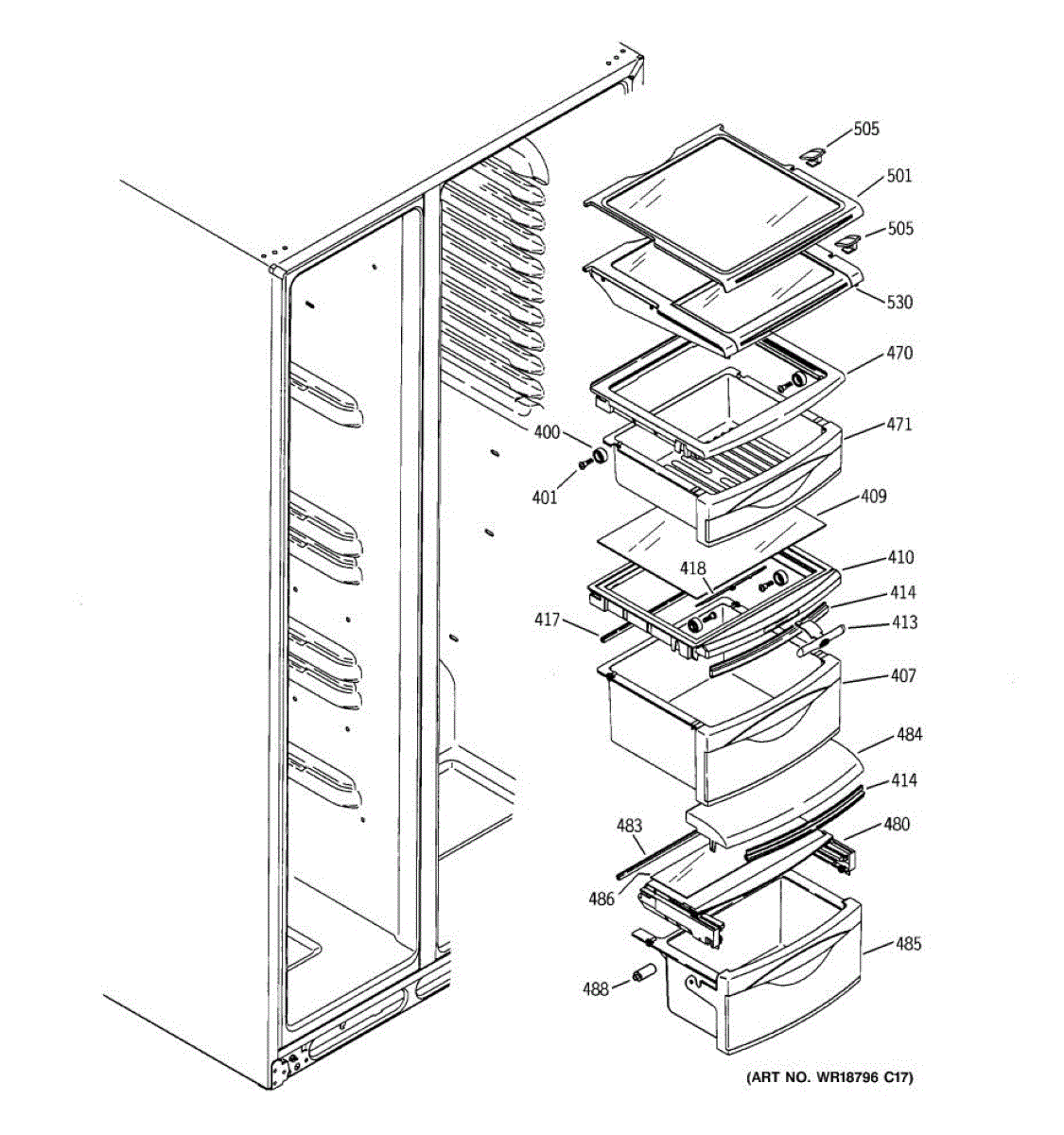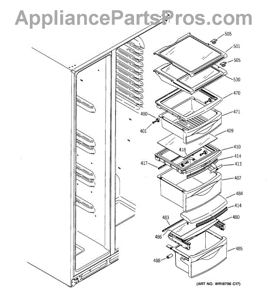 Parts for Ge GSS25XGPCWW: 08 - Fresh Food Shelves Parts