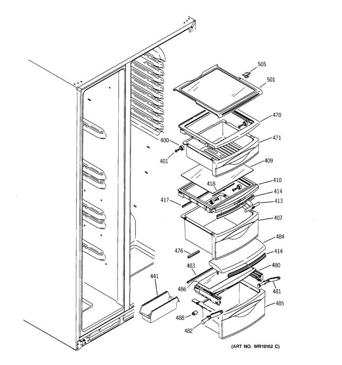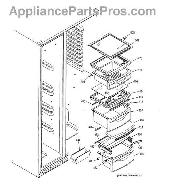 The Drawer Cover is an OEM replacement part for select GE refrigerator vegetable and deli drawers. It protects stored contents from dehydration, contaminants and prolonged illumination while keeping the drawers light-sealed. Proper drawer insulation optimizes food storage conditions. Causes of a bad drawer cover can include cracks and breaks from repeated drawer opening/closing stresses over time. Exposure to produce acids and moisture accelerates degradation of plastic sealing surfaces. Symptoms include: