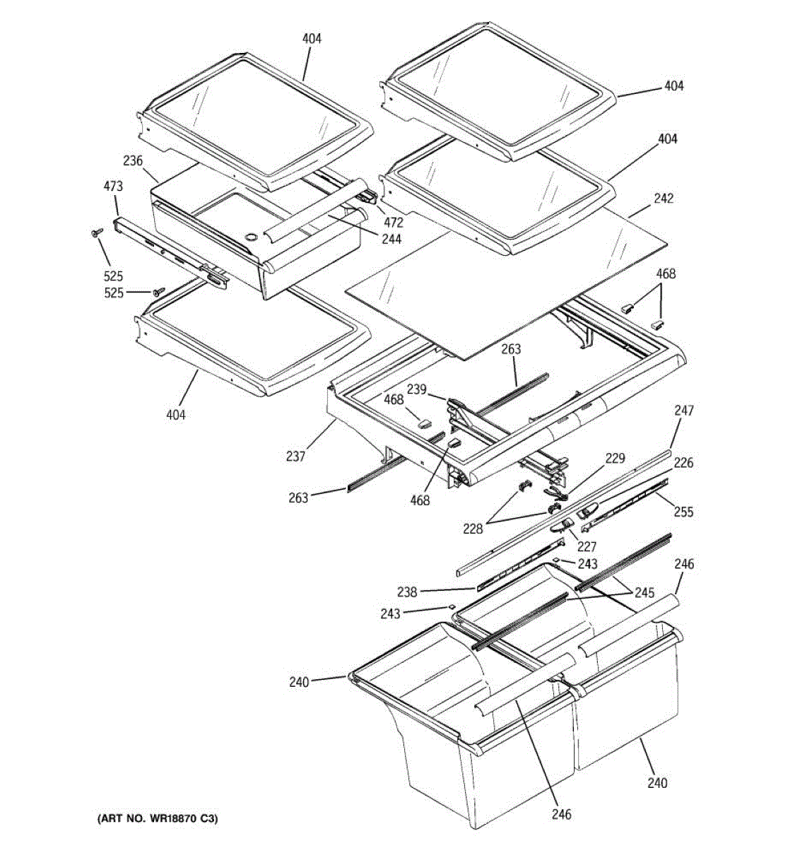 Reinforcement bar for refrigerator shelves. Installs to strengthen and support shelf frames. Replace if cracked, bent, or broken to restore stability.