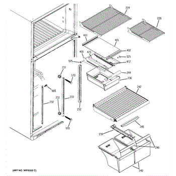 Parts for Ge GTS18DBPALWW: 05 - Fresh Food Shelves Parts