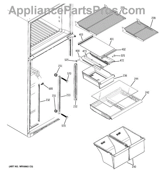 Parts for Ge GTS18DBPJRBB: 05 - Fresh Food Shelves Parts