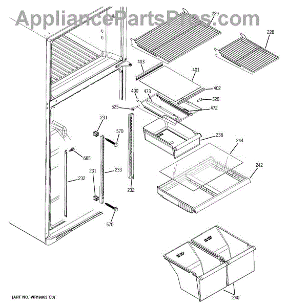 This left side snack pan slide is a genuine General Electric part, sold individually. This left side snack pan slide can be used as a replacement part for a refrigerator. This is the part on which the crisper drawer rests, and it facilitates the sliding in and out of the crisper drawer. The left side snack pan slide is made out of durable white plastic.The left side snack pan slide might have to be replaced at some point within the lifespan of a refrigerator if it is damaged to the point that it can no longer serve its function. This damage could take the form of cracks, punctures, or erosion to the plastic material as a result of general wear and tear or from a collision with a hard object that warps the component beyond functionality. If either of these things occur, the component should be removed and replaced with this genuine OEM replacement part.This is an OEM part sourced directly from the manufacturer. It is sold individually. This left side snack pan slide is compatible with the following appliance brands: General Electric and Kenmore.