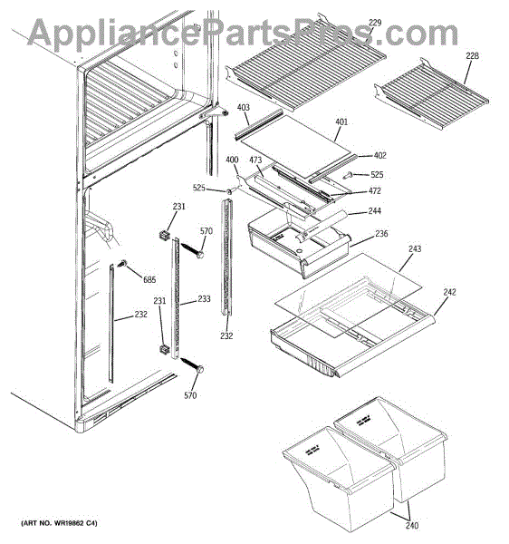 Parts for Ge GTS18DCPLRWW: 05 - Fresh Food Shelves Parts