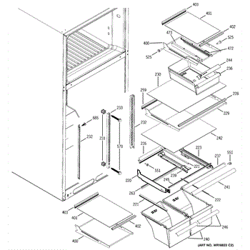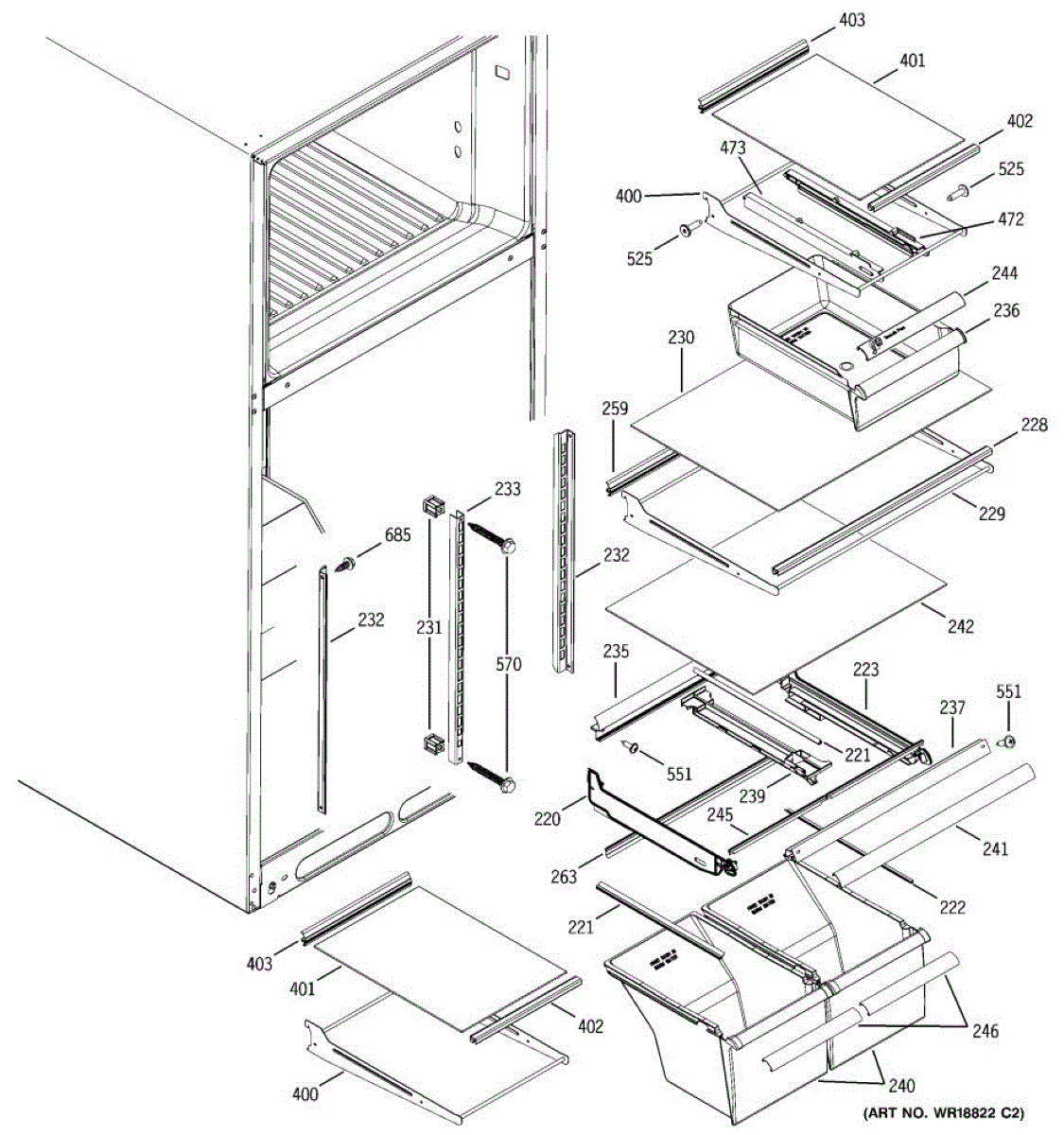 Cantilever side track for refrigerator shelves. Installs on interior wall to support sliding shelf mechanism. Replace if cracked, broken, or worn.