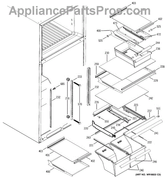 Left side slide rail for refrigerator snack pan or crisper drawer. Replace if broken, cracked, or damaged to restore smooth drawer operation. Sold individually.
