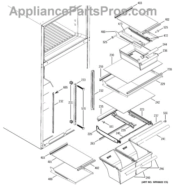 Parts for Ge GTS18IBRERWW: 05 - Fresh Food Shelves Parts