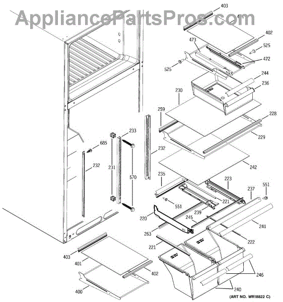 Left side slide rail for refrigerator snack pan or crisper drawer. Replace if broken, cracked, or damaged to restore smooth drawer operation. Sold individually.