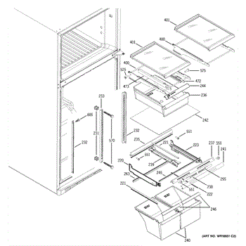 Cantilever side track for refrigerator shelves. Installs on interior wall to support sliding shelf mechanism. Replace if cracked, broken, or worn.
