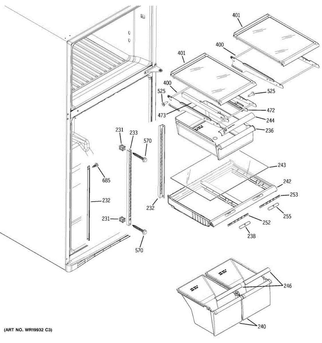 Causes of a bad Vegetable Drawer Cover Glass often relate to physical impact from items being placed on or removed from the cover, temperature stress from uneven cooling, or wear and tear over time.