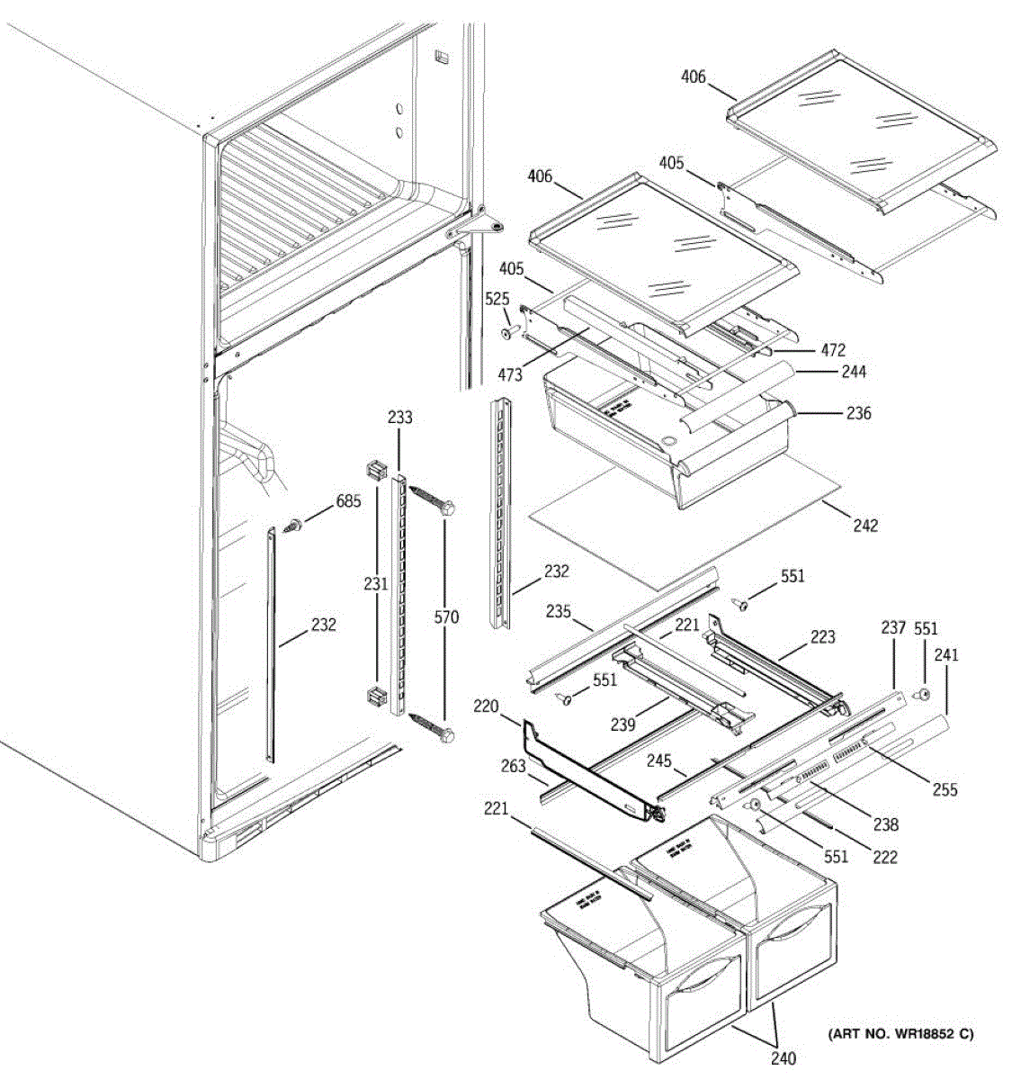 Parts for Ge GTS18WCMBRCC: 05 - Fresh Food Shelves Parts
