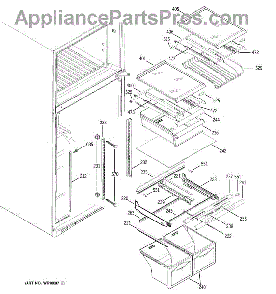 Parts for Ge GTS19QBMARBB: 04 - Fresh Food Shelves Parts