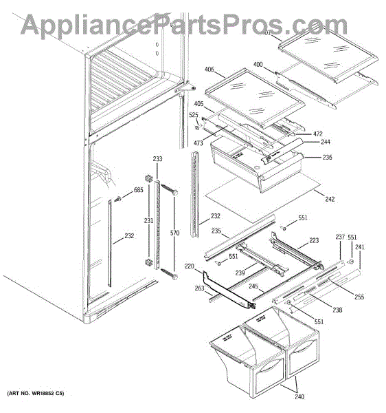 Parts for Ge GTS19QBPBRBB: 05 - Fresh Food Shelves Parts