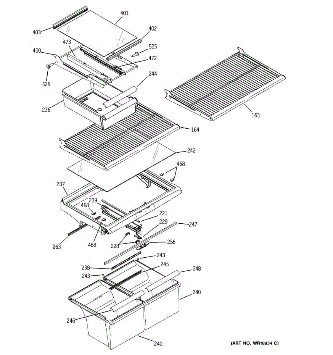 Parts for Ge GTS22FBMARCC: 06 - Fresh Food Shelves Parts