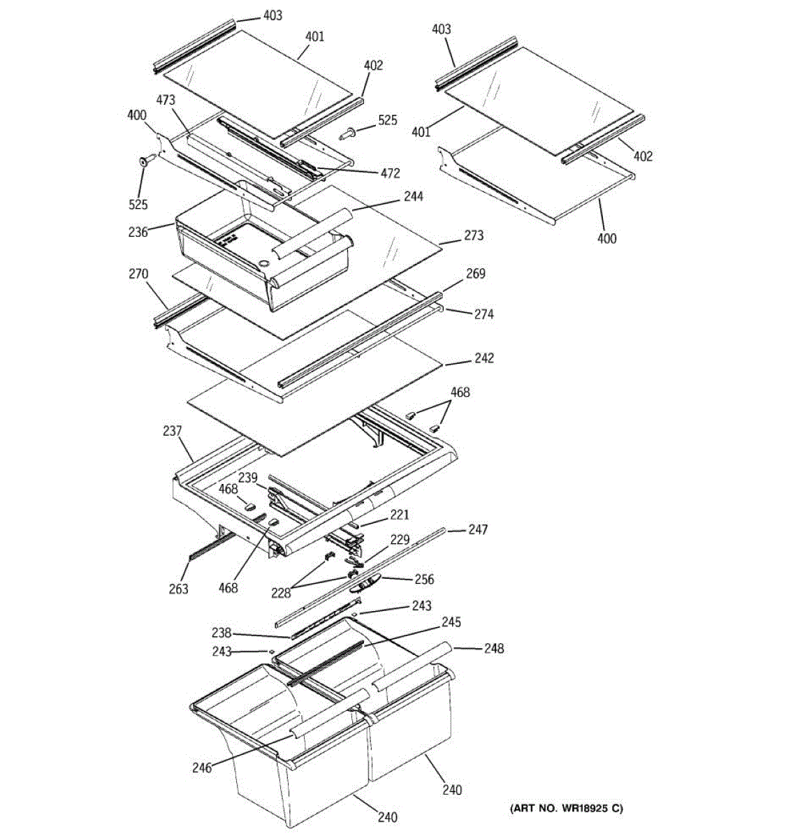 Parts for Ge GTS22ICMBRCC: 06 - Fresh Food Shelves Parts