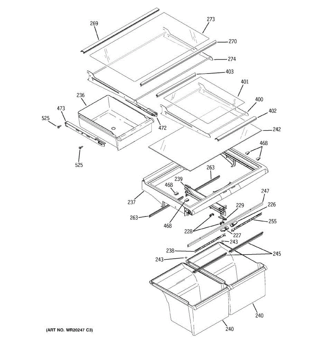 Clear glass shelf that installs in refrigerator shelf tracks. Replaces cracked, chipped, broken, or missing shelves to restore usable storage space.