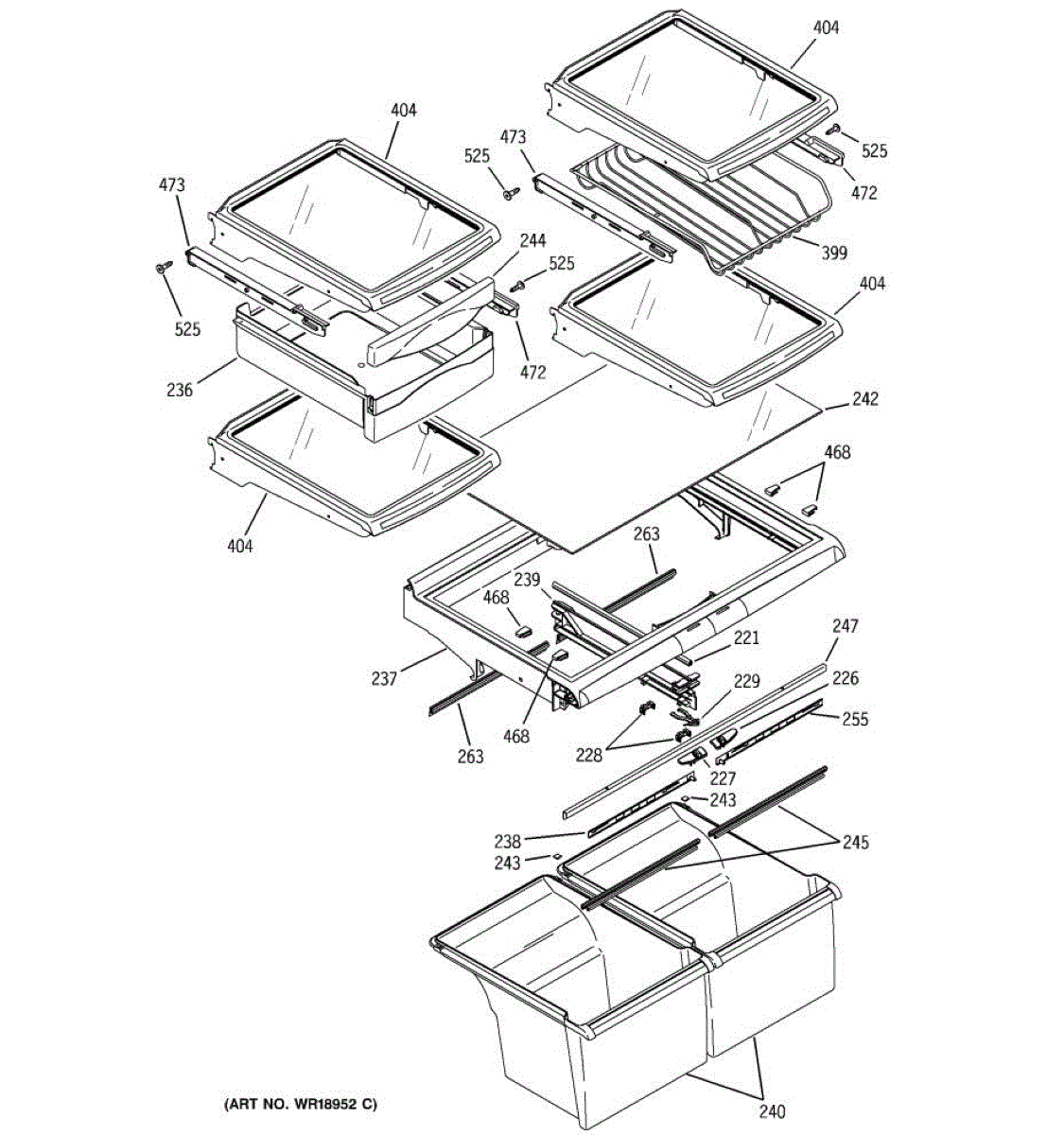 Parts for Ge GTS22UBPARBB: 06 - Fresh Food Shelves Parts