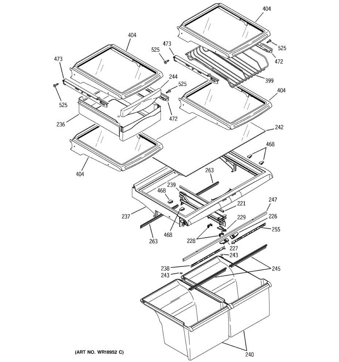 Parts for Ge GTS22UBPBRCC: 06 - Fresh Food Shelves Parts