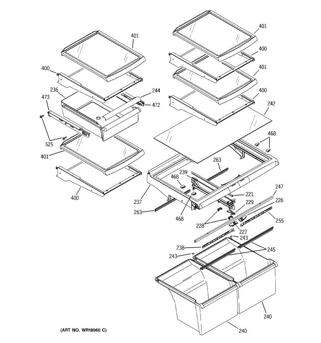 Parts for Ge GTS22WCPARBB: 06 - Fresh Food Shelves Parts