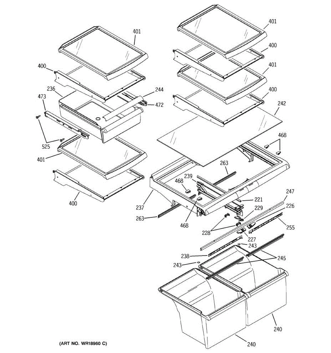 Parts for Ge GTS22WCPBRCC: 06 - Fresh Food Shelves Parts