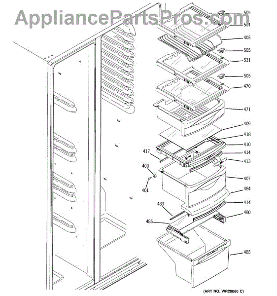 The Drawer Cover is an OEM replacement part for select GE refrigerator vegetable and deli drawers. It protects stored contents from dehydration, contaminants and prolonged illumination while keeping the drawers light-sealed. Proper drawer insulation optimizes food storage conditions. Causes of a bad drawer cover can include cracks and breaks from repeated drawer opening/closing stresses over time. Exposure to produce acids and moisture accelerates degradation of plastic sealing surfaces. Symptoms include: