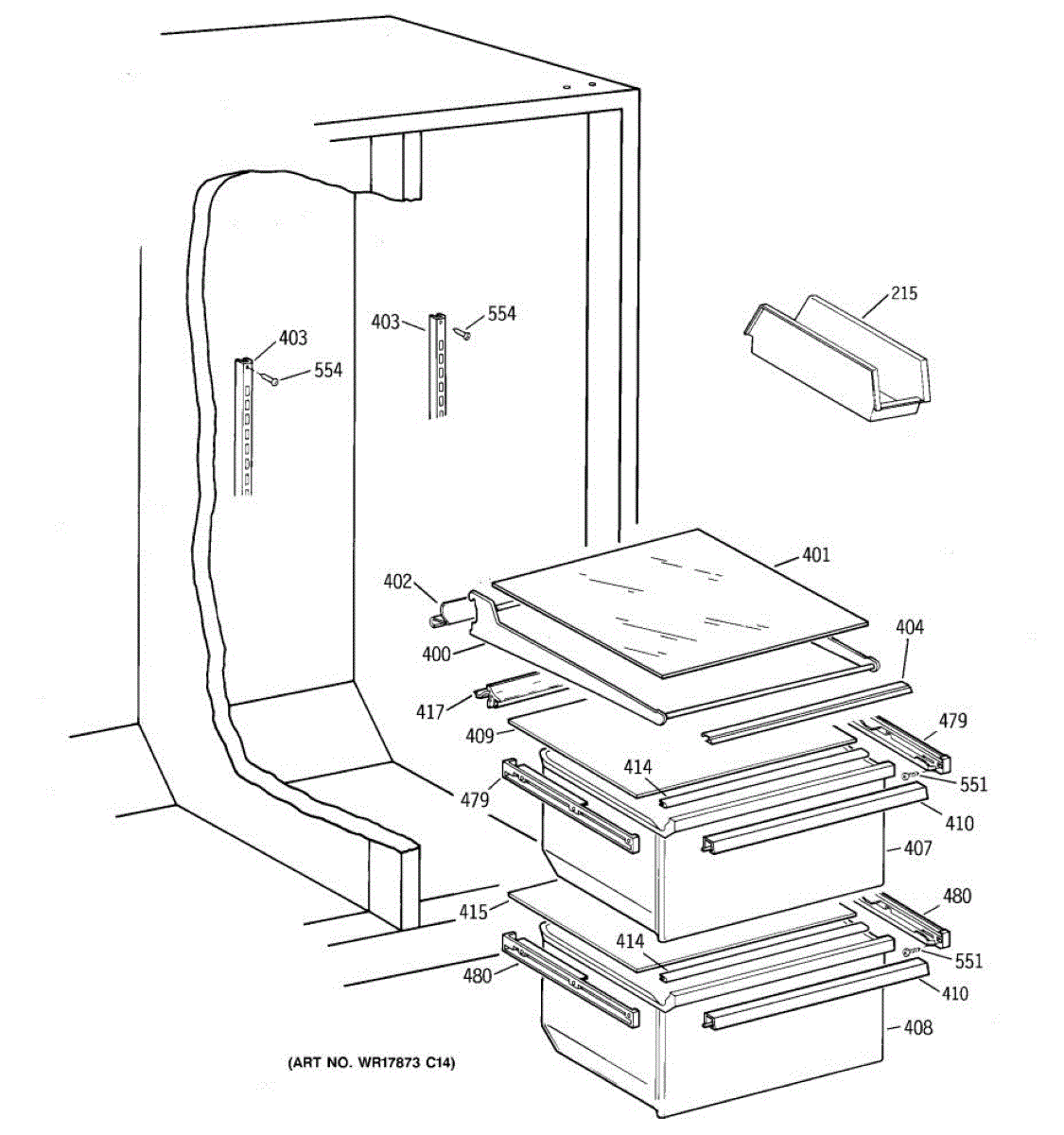 Parts for Ge MRSC20KWBEAD: 04 - Fresh Food Shelves Parts