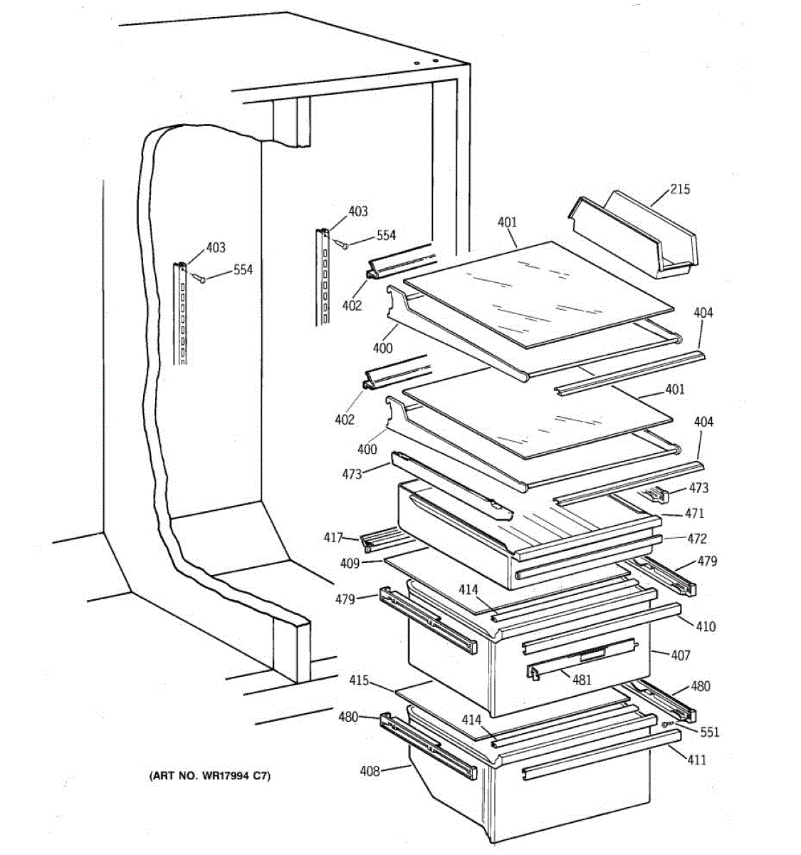 Parts for Ge MSK27DRZAAA: 05 - Fresh Food Shelves Parts