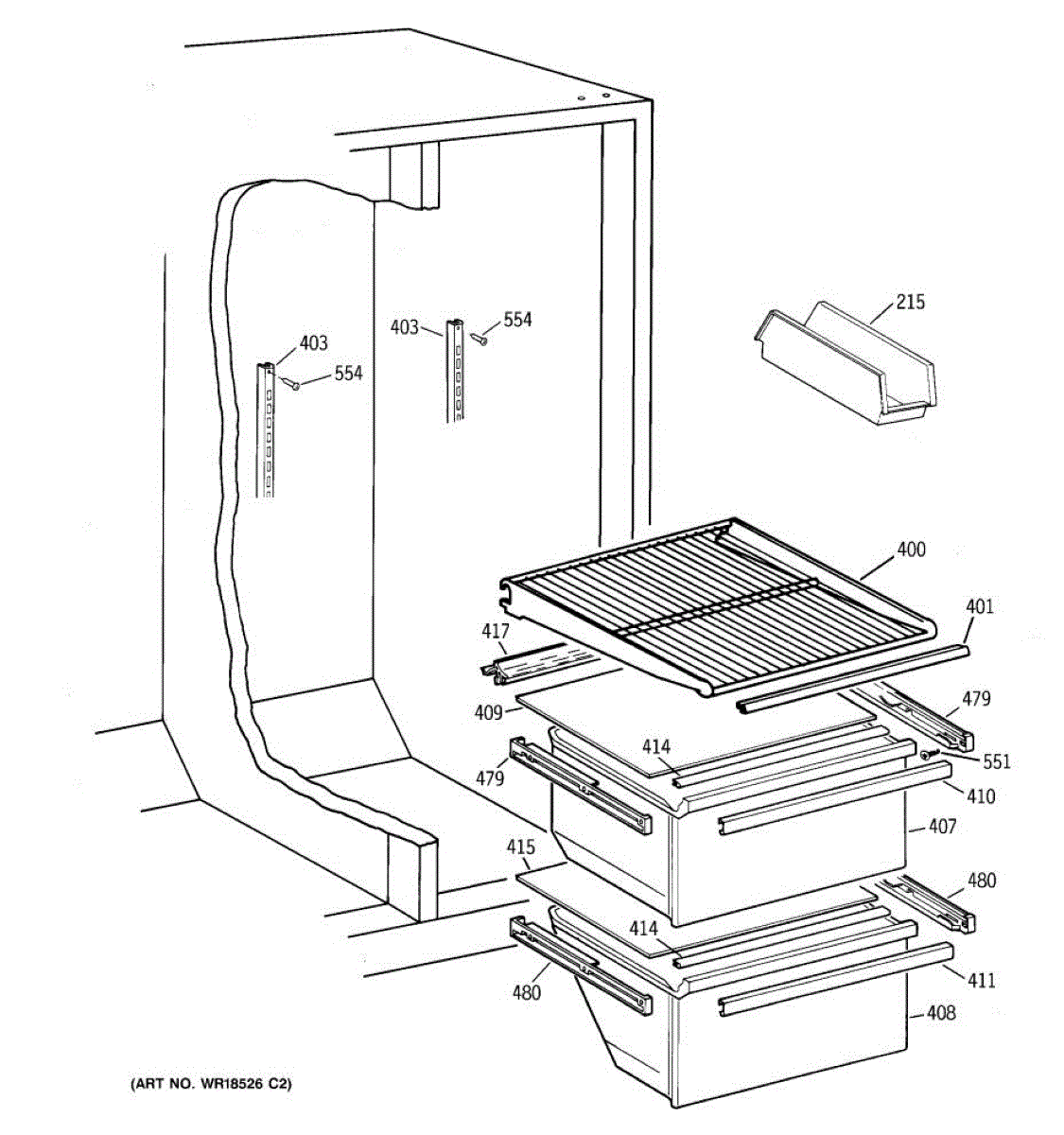 Parts for Ge MSX20BABAAD: 04 - Fresh Food Shelves Parts