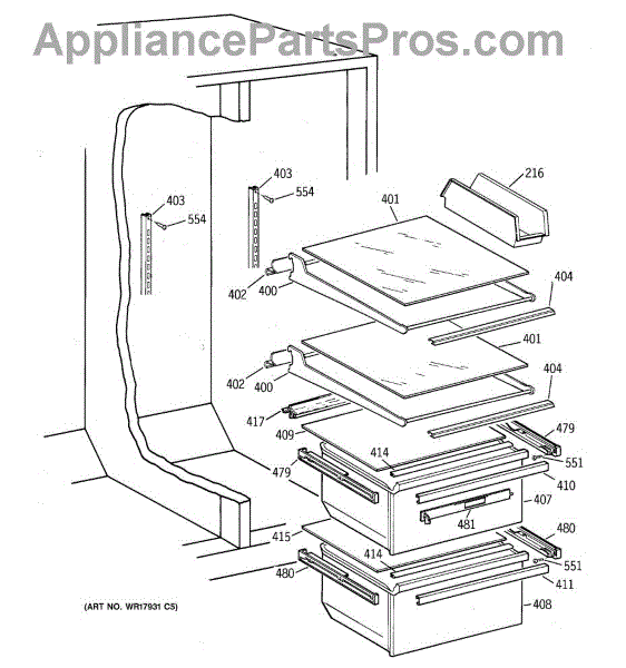Shelf track for refrigerator. Guides and supports adjustable shelves, allowing smooth sliding movement. Replace if cracked, broken, or worn smooth.