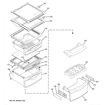 Plastic cover that sits over the crisper drawer in your refrigerator. Replace if cracked, broken, or missing to protect produce and maintain humidity.